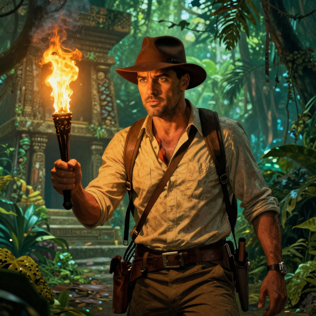 A rugged explorer seeking treasures in dangerous ruins. Character appearance will match the reference image while maintaining the chosen art style.