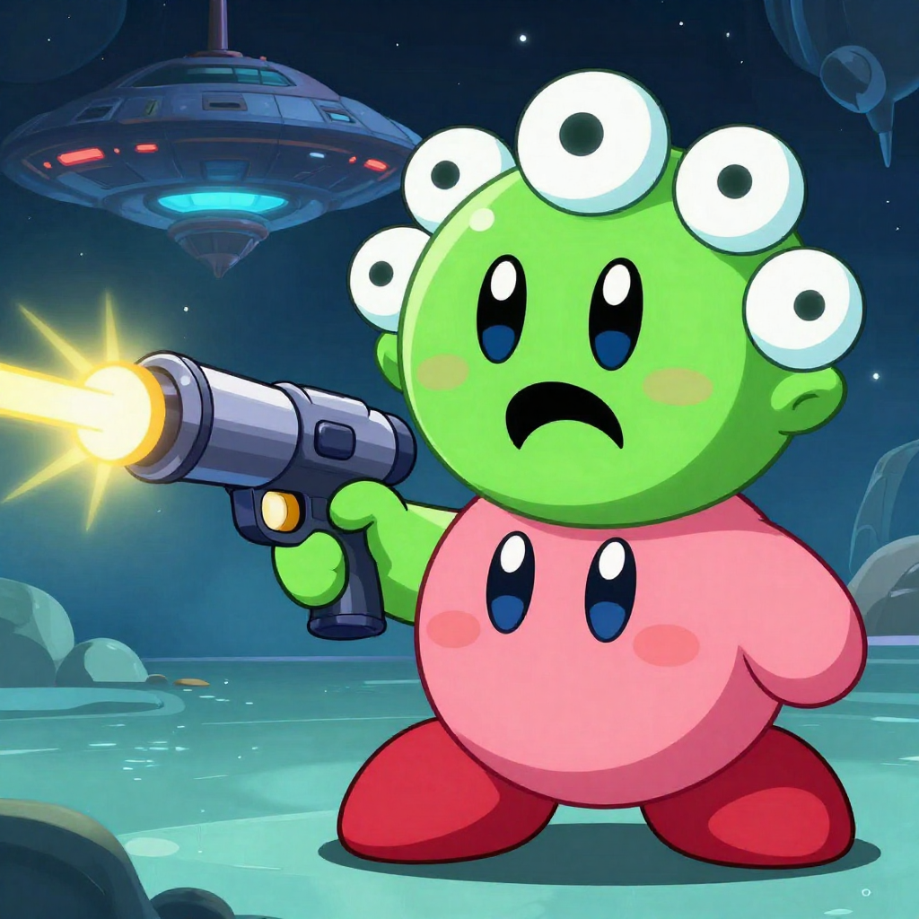 A menacing extraterrestrial visitor with advanced weaponry. Character appearance will match the reference image while maintaining the chosen art style.