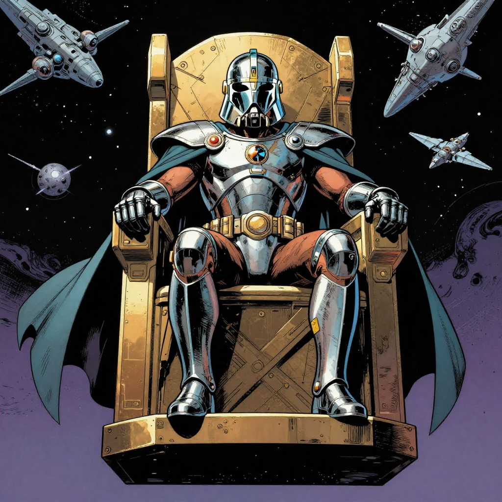 A tyrannical ruler of the galaxy with a commanding presence. Character appearance will match the reference image while maintaining the chosen art style.