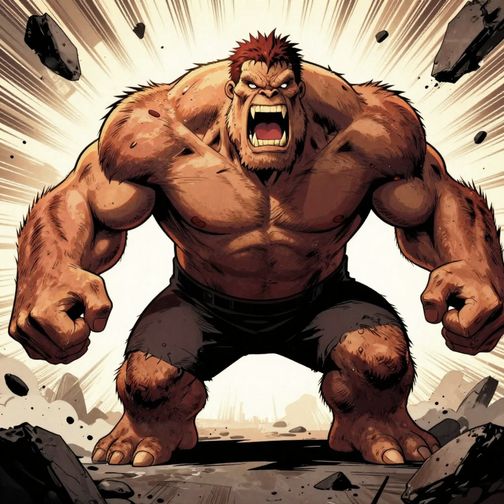 A hulking creature of immense strength and rage. Character appearance will match the reference image while maintaining the chosen art style.