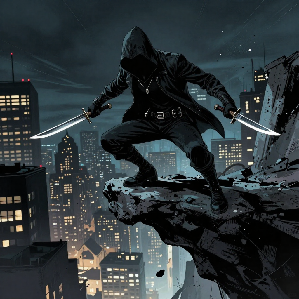 A stealthy anti-hero who operates in the shadows of the city. Character appearance will match the reference image while maintaining the chosen art style.