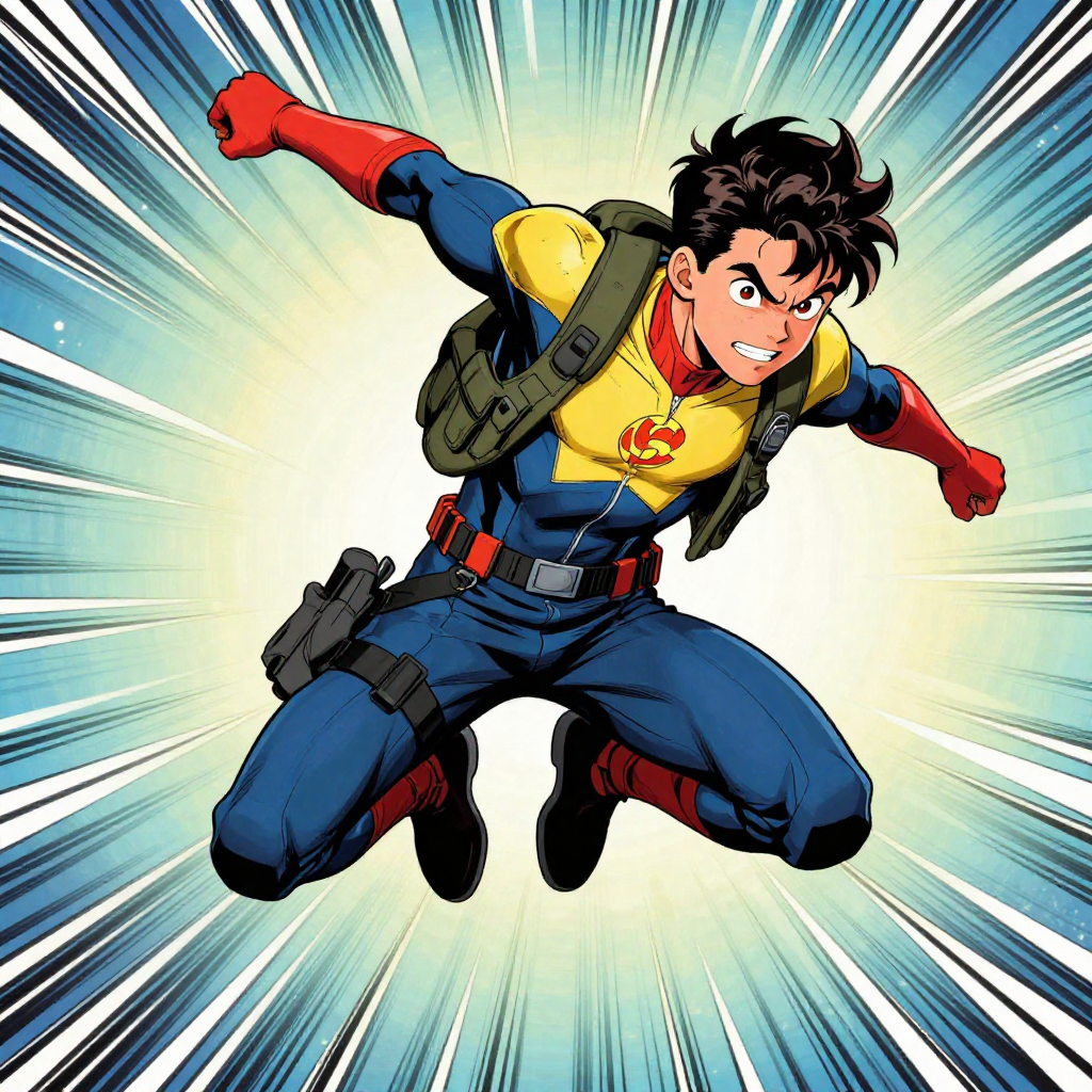 An energetic young hero-in-training with modern gadgets and agility. Character appearance will match the reference image while maintaining the chosen art style.